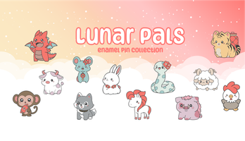 An enamel pin collection inspired by Lunar New Year and kawaii style. A companion series to last year's Zodiac Pals.